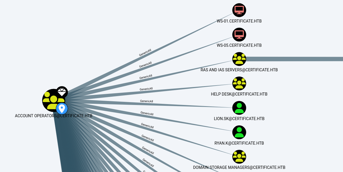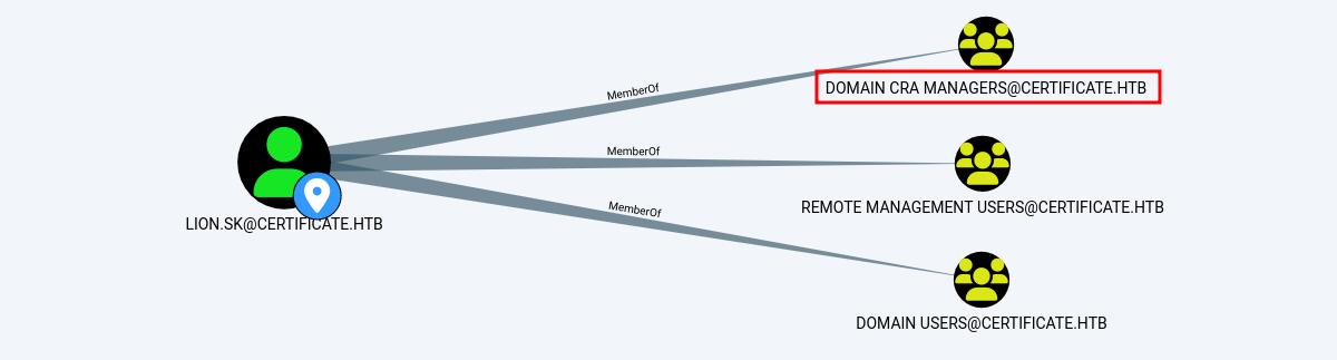 SMB 10.10.11.71 445 DC01 [+] certificate.htb\ryan.k:Doom123!Podemos acceder por winrm con los usuarios. El usuario lion.sk tiene la bandera user.txt.