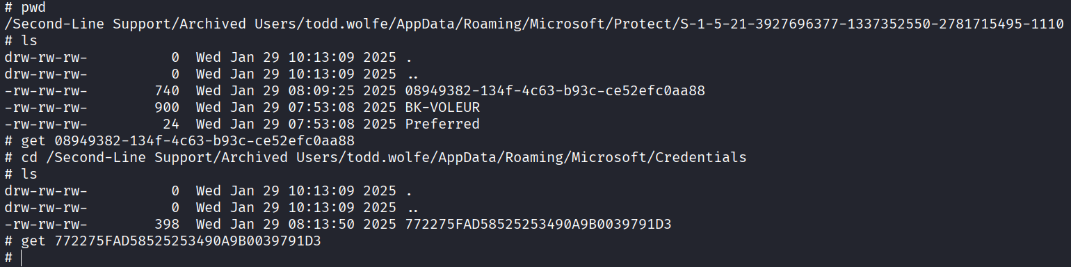 cd /Second-Line Support/Archived Users/todd.wolfe/AppData/Roaming/Microsoft/Protect/S-1-5-21-3927696377-1337352550-2781715495-1110